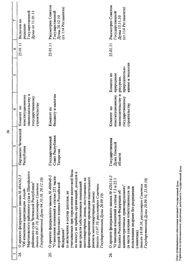 "О КАЛЕНДАРЕ РАССМОТРЕНИЯ ВОПРОСОВ ГОСУДАРСТВЕННОЙ ДУМОЙ С 11 ПО 28 ЯНВАРЯ 2011 ГОДА"