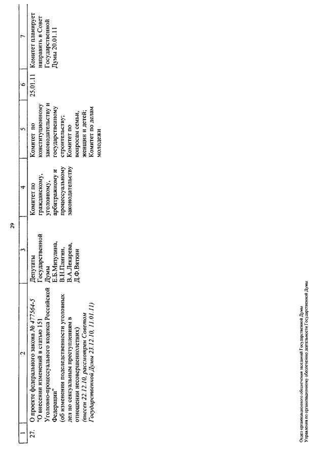 "О КАЛЕНДАРЕ РАССМОТРЕНИЯ ВОПРОСОВ ГОСУДАРСТВЕННОЙ ДУМОЙ С 11 ПО 28 ЯНВАРЯ 2011 ГОДА"