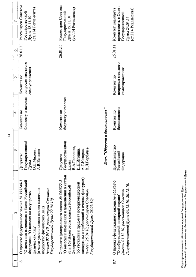 "О КАЛЕНДАРЕ РАССМОТРЕНИЯ ВОПРОСОВ ГОСУДАРСТВЕННОЙ ДУМОЙ С 11 ПО 28 ЯНВАРЯ 2011 ГОДА"
