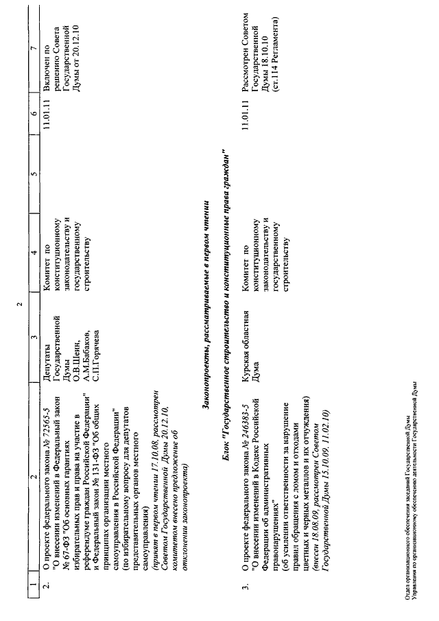 "О КАЛЕНДАРЕ РАССМОТРЕНИЯ ВОПРОСОВ ГОСУДАРСТВЕННОЙ ДУМОЙ С 11 ПО 28 ЯНВАРЯ 2011 ГОДА"