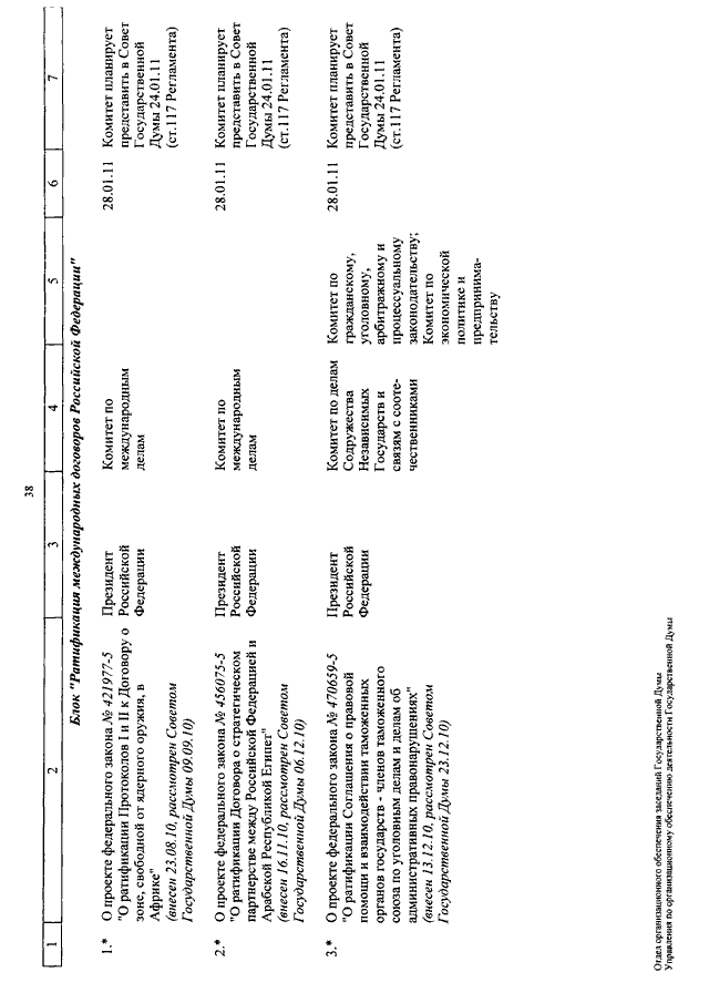 "О КАЛЕНДАРЕ РАССМОТРЕНИЯ ВОПРОСОВ ГОСУДАРСТВЕННОЙ ДУМОЙ С 11 ПО 28 ЯНВАРЯ 2011 ГОДА"