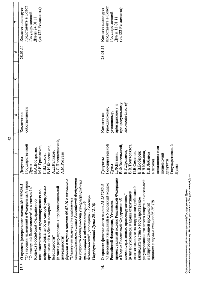 "О КАЛЕНДАРЕ РАССМОТРЕНИЯ ВОПРОСОВ ГОСУДАРСТВЕННОЙ ДУМОЙ С 11 ПО 28 ЯНВАРЯ 2011 ГОДА"