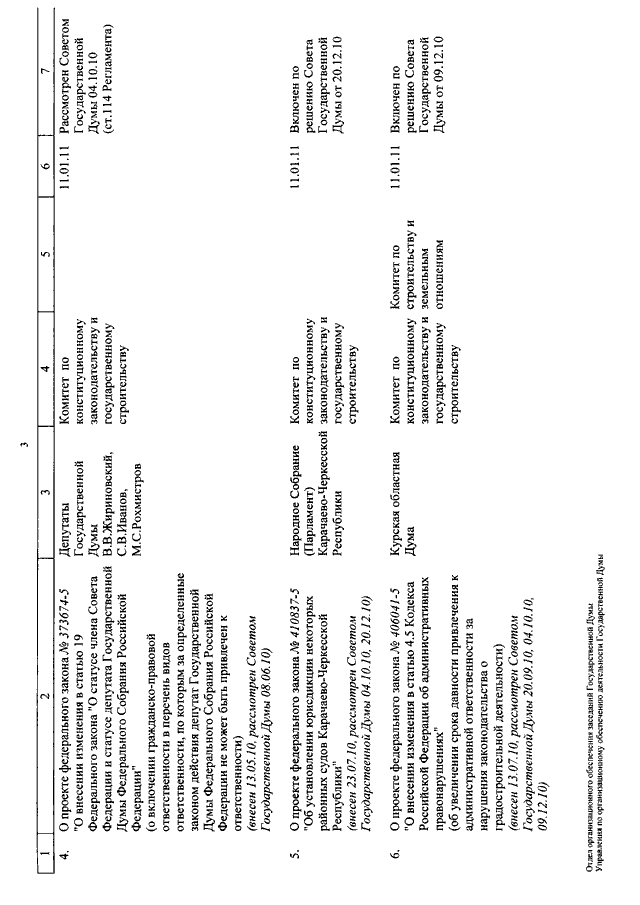 "О КАЛЕНДАРЕ РАССМОТРЕНИЯ ВОПРОСОВ ГОСУДАРСТВЕННОЙ ДУМОЙ С 11 ПО 28 ЯНВАРЯ 2011 ГОДА"
