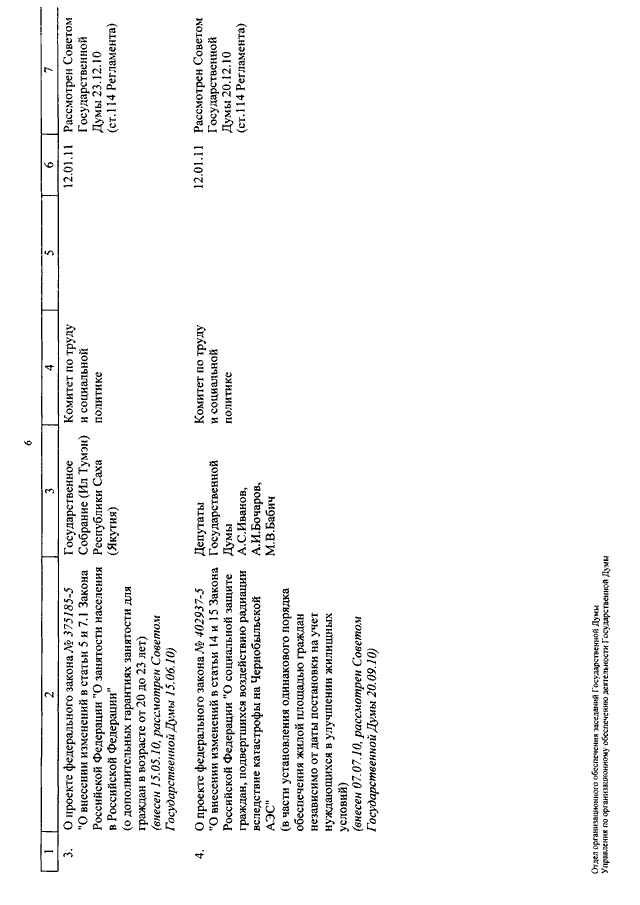 "О КАЛЕНДАРЕ РАССМОТРЕНИЯ ВОПРОСОВ ГОСУДАРСТВЕННОЙ ДУМОЙ С 11 ПО 28 ЯНВАРЯ 2011 ГОДА"
