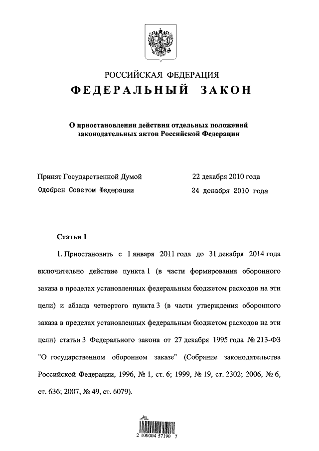 ФЕДЕРАЛЬНЫЙ ЗАКОН от 28.12.2010 N 402-ФЗ