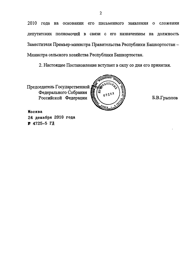 ПОСТАНОВЛЕНИЕ ГД ФС РФ от 24.12.2010 N 4725-5 ГД