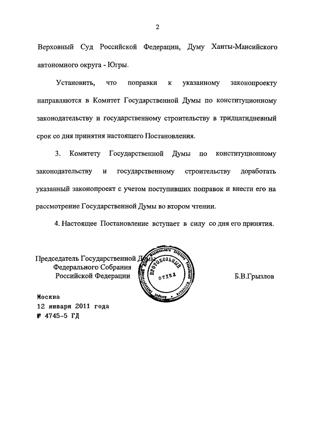 ПОСТАНОВЛЕНИЕ ГД ФС РФ от 12.01.2011 N 4745-5 ГД