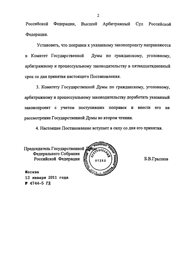 ПОСТАНОВЛЕНИЕ ГД ФС РФ от 12.01.2011 N 4744-5 ГД