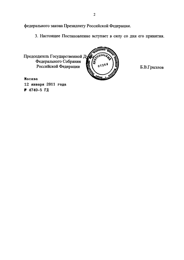 ПОСТАНОВЛЕНИЕ ГД ФС РФ от 12.01.2011 N 4740-5 ГД