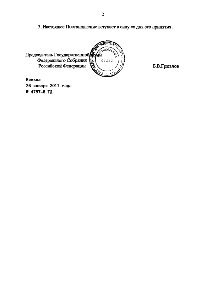 ПОСТАНОВЛЕНИЕ ГД ФС РФ от 26.01.2011 N 4787-5 ГД