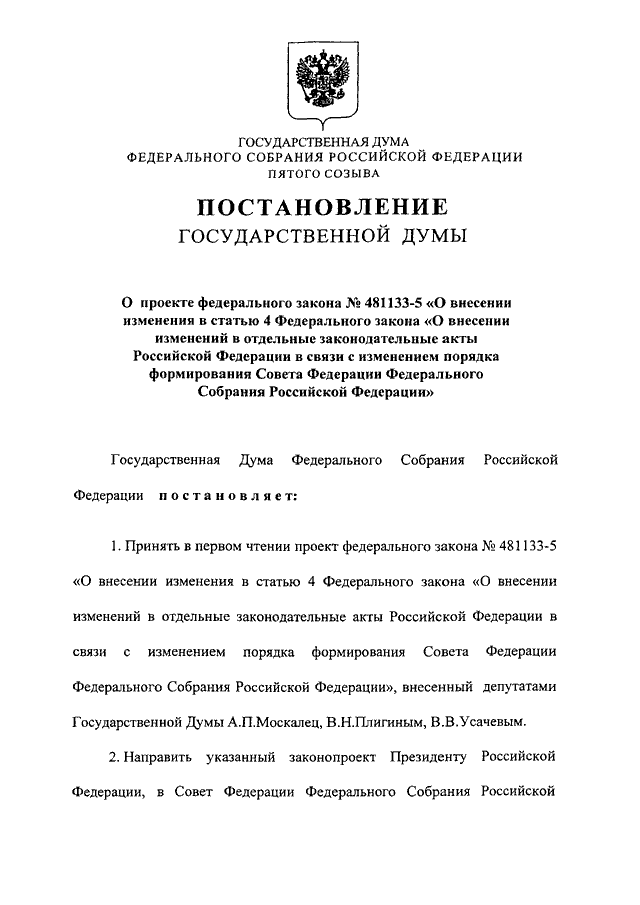 "О ПРОЕКТЕ ФЕДЕРАЛЬНОГО ЗАКОНА N 481133-5 "ВНЕСЕНИИ ИЗМЕНЕНИЯ В