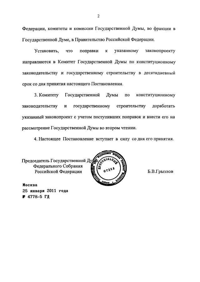 ПОСТАНОВЛЕНИЕ ГД ФС РФ от 25.01.2011 N 4778-5 ГД