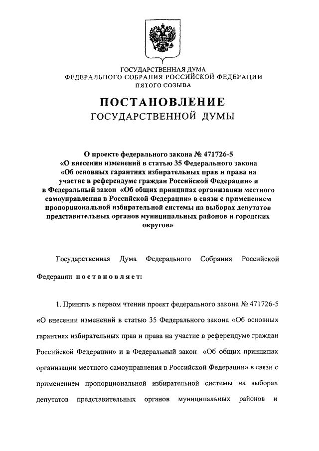 "О ПРОЕКТЕ ФЕДЕРАЛЬНОГО ЗАКОНА N 471726-5 "О ВНЕСЕНИИ ИЗМЕНЕНИЙ В