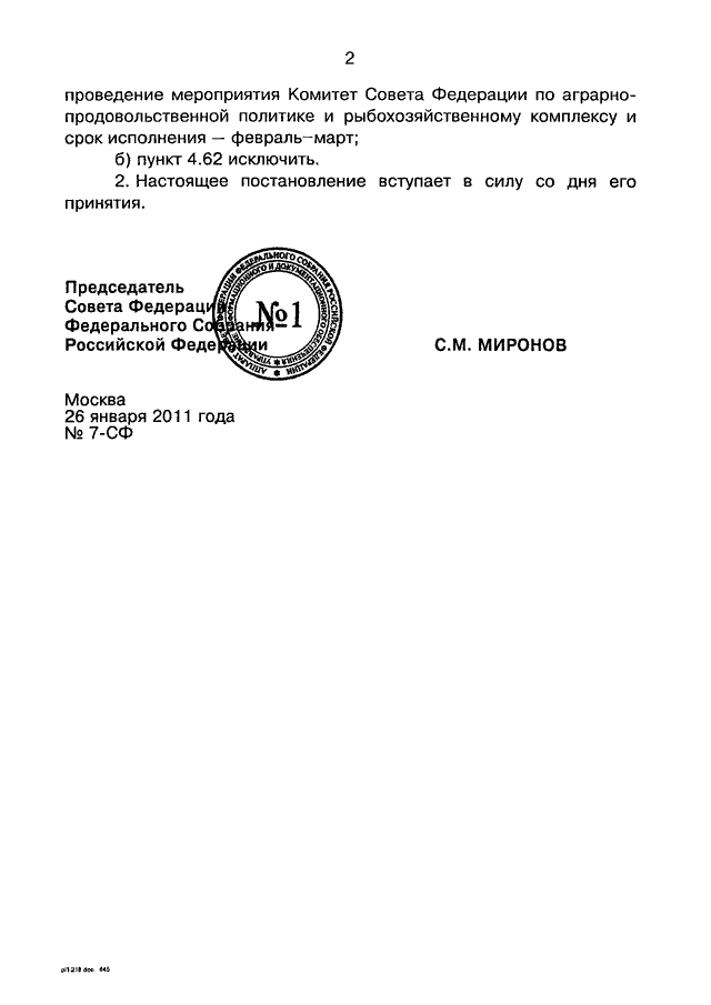 ПОСТАНОВЛЕНИЕ СФ ФС РФ от 26.01.2011 N 7-СФ