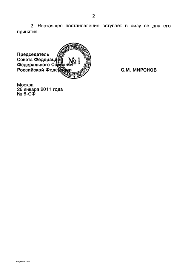 ПОСТАНОВЛЕНИЕ СФ ФС РФ от 26.01.2011 N 6-СФ