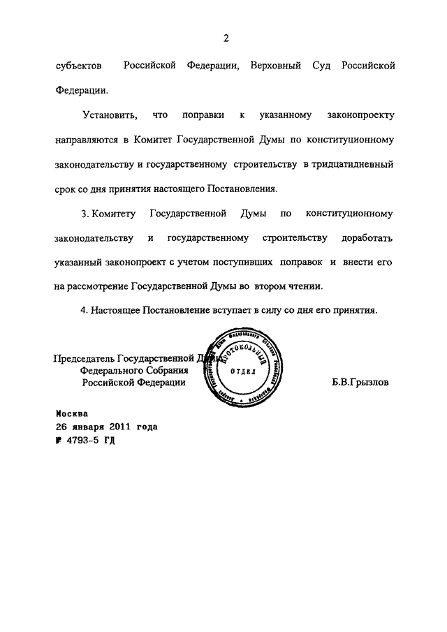ПОСТАНОВЛЕНИЕ ГД ФС РФ от 26.01.2011 N 4793-5 ГД
