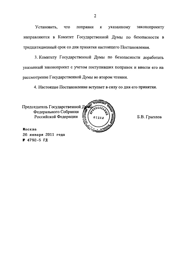 ПОСТАНОВЛЕНИЕ ГД ФС РФ от 26.01.2011 N 4792-5 ГД