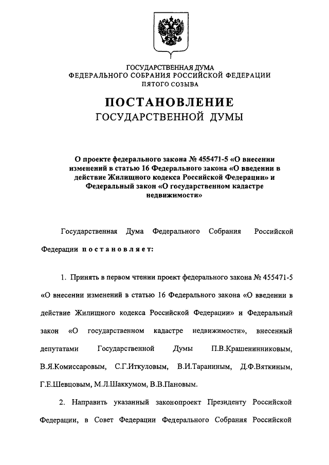 "О ПРОЕКТЕ ФЕДЕРАЛЬНОГО ЗАКОНА N 455471-5 "О ВНЕСЕНИИ ИЗМЕНЕНИЙ В