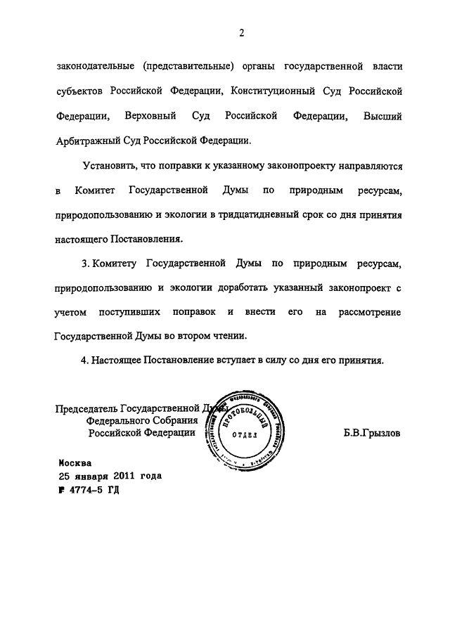 ПОСТАНОВЛЕНИЕ ГД ФС РФ от 25.01.2011 N 4774-5 ГД