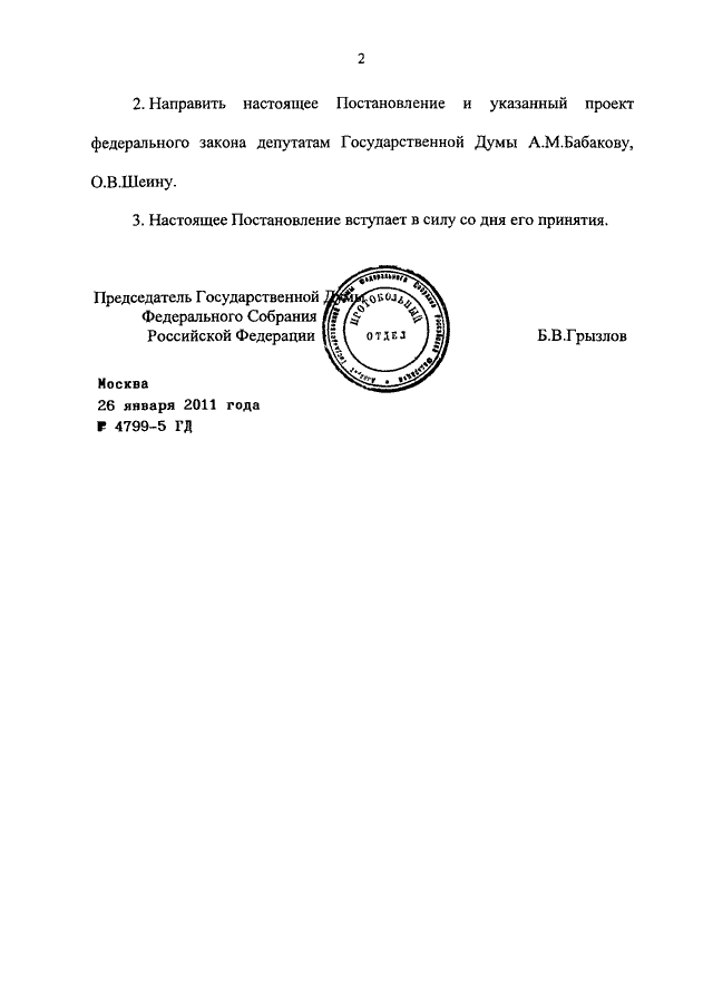 ПОСТАНОВЛЕНИЕ ГД ФС РФ от 26.01.2011 N 4799-5 ГД