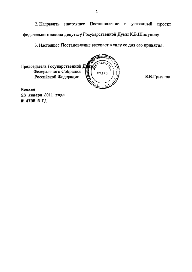ПОСТАНОВЛЕНИЕ ГД ФС РФ от 26.01.2011 N 4795-5 ГД