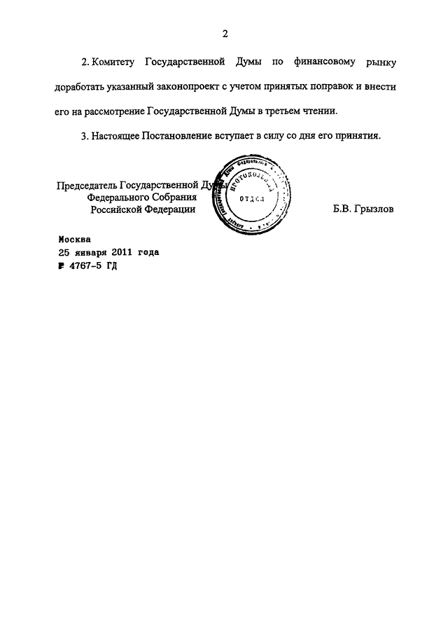 ПОСТАНОВЛЕНИЕ ГД ФС РФ от 25.01.2011 N 4767-5 ГД