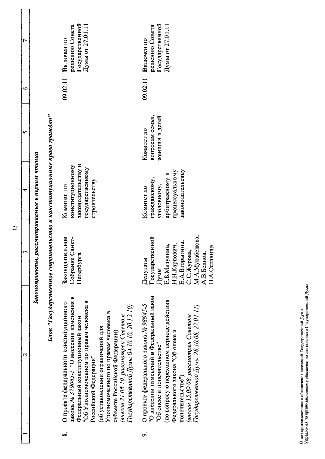 "О КАЛЕНДАРЕ РАССМОТРЕНИЯ ВОПРОСОВ ГОСУДАРСТВЕННОЙ ДУМОЙ С 8 ПО 25 ФЕВРАЛЯ 2011 ГОДА"