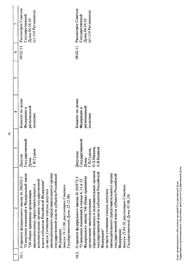 "О КАЛЕНДАРЕ РАССМОТРЕНИЯ ВОПРОСОВ ГОСУДАРСТВЕННОЙ ДУМОЙ С 8 ПО 25 ФЕВРАЛЯ 2011 ГОДА"