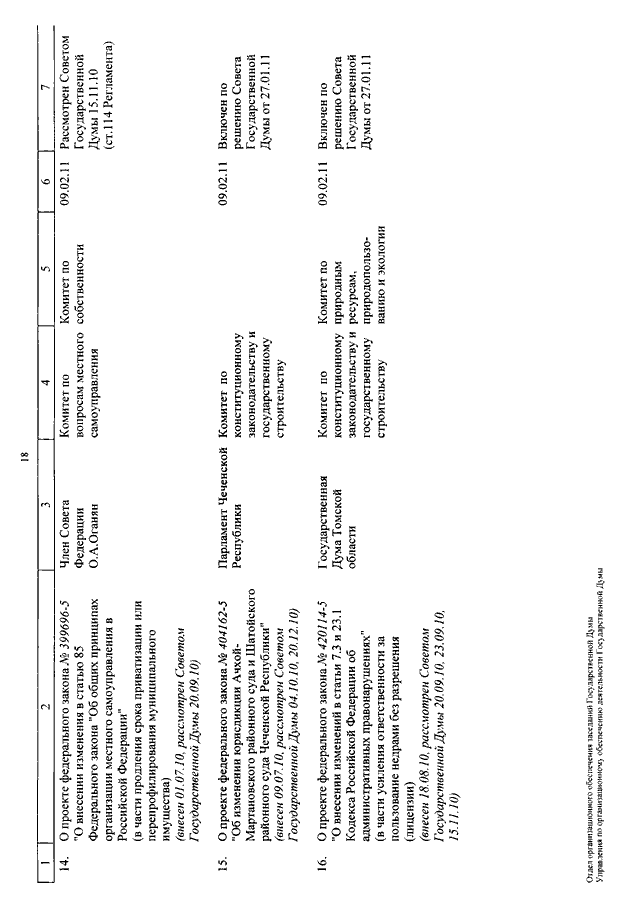"О КАЛЕНДАРЕ РАССМОТРЕНИЯ ВОПРОСОВ ГОСУДАРСТВЕННОЙ ДУМОЙ С 8 ПО 25 ФЕВРАЛЯ 2011 ГОДА"