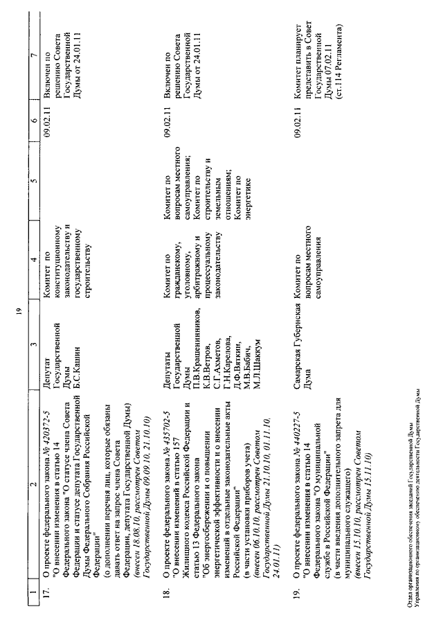 "О КАЛЕНДАРЕ РАССМОТРЕНИЯ ВОПРОСОВ ГОСУДАРСТВЕННОЙ ДУМОЙ С 8 ПО 25 ФЕВРАЛЯ 2011 ГОДА"