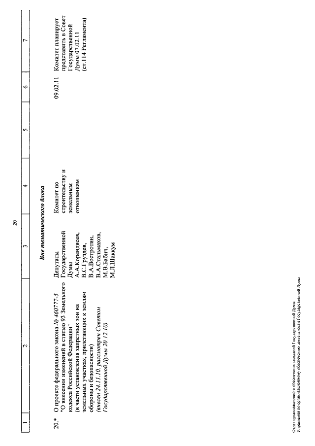 "О КАЛЕНДАРЕ РАССМОТРЕНИЯ ВОПРОСОВ ГОСУДАРСТВЕННОЙ ДУМОЙ С 8 ПО 25 ФЕВРАЛЯ 2011 ГОДА"