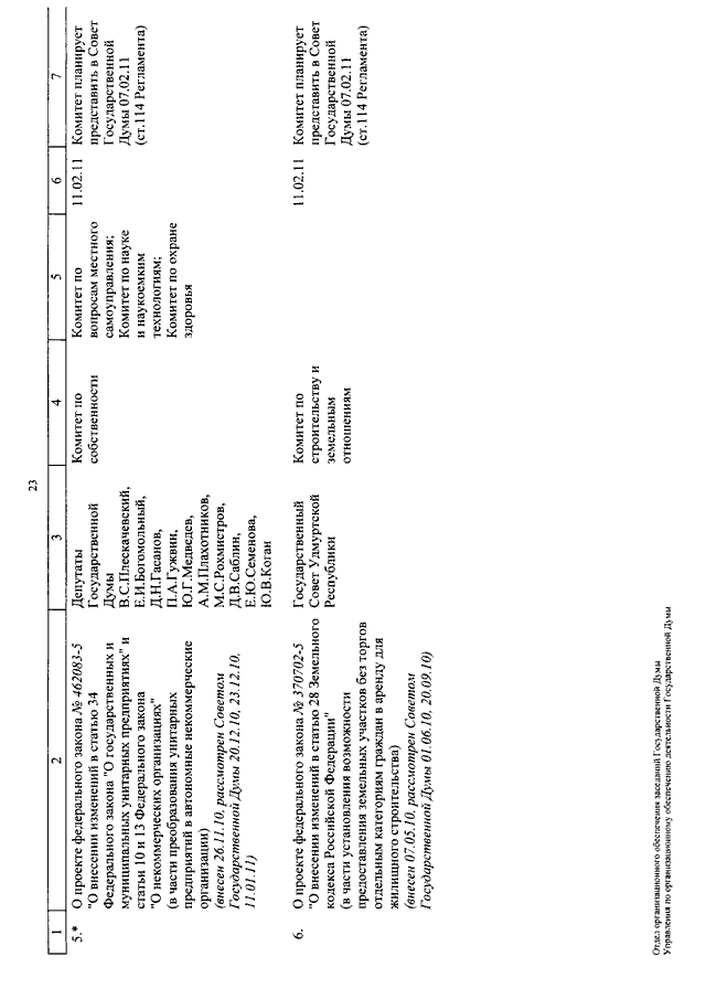 "О КАЛЕНДАРЕ РАССМОТРЕНИЯ ВОПРОСОВ ГОСУДАРСТВЕННОЙ ДУМОЙ С 8 ПО 25 ФЕВРАЛЯ 2011 ГОДА"