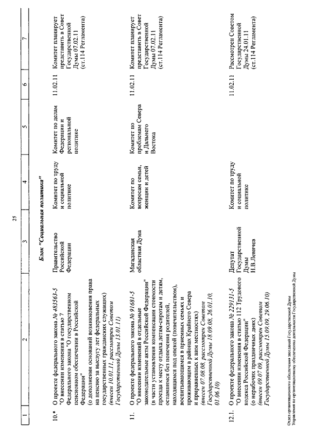 "О КАЛЕНДАРЕ РАССМОТРЕНИЯ ВОПРОСОВ ГОСУДАРСТВЕННОЙ ДУМОЙ С 8 ПО 25 ФЕВРАЛЯ 2011 ГОДА"