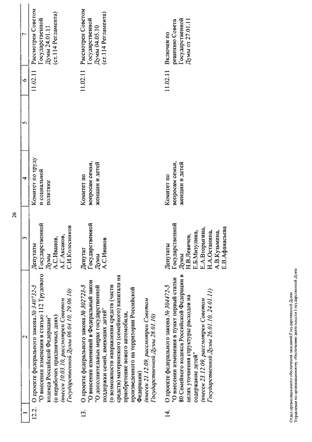 "О КАЛЕНДАРЕ РАССМОТРЕНИЯ ВОПРОСОВ ГОСУДАРСТВЕННОЙ ДУМОЙ С 8 ПО 25 ФЕВРАЛЯ 2011 ГОДА"