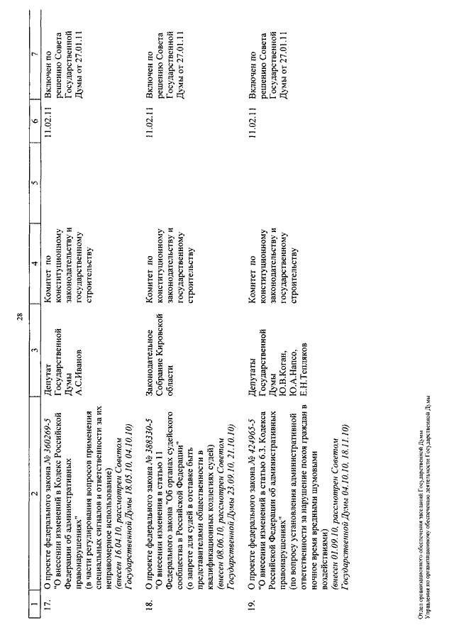 "О КАЛЕНДАРЕ РАССМОТРЕНИЯ ВОПРОСОВ ГОСУДАРСТВЕННОЙ ДУМОЙ С 8 ПО 25 ФЕВРАЛЯ 2011 ГОДА"