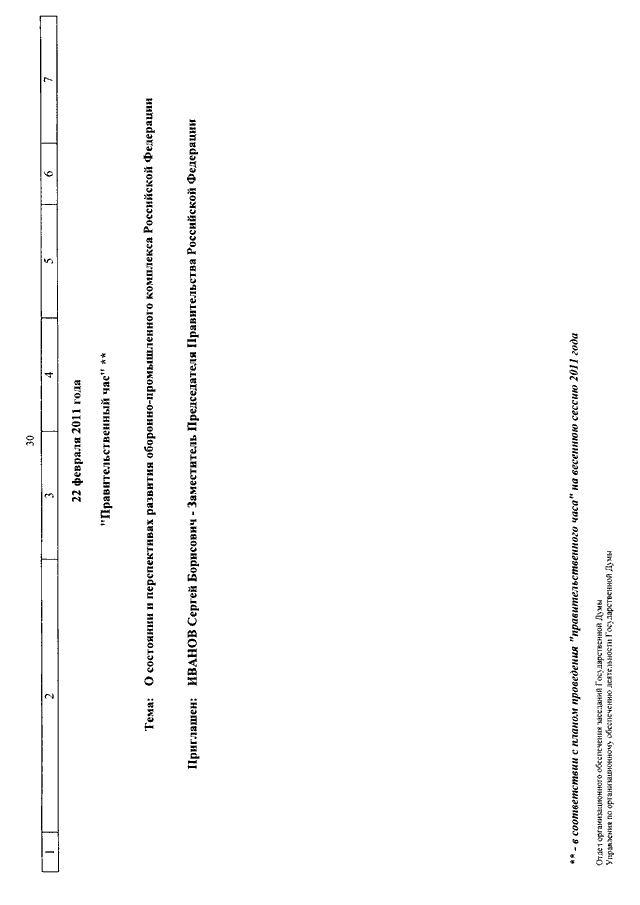 "О КАЛЕНДАРЕ РАССМОТРЕНИЯ ВОПРОСОВ ГОСУДАРСТВЕННОЙ ДУМОЙ С 8 ПО 25 ФЕВРАЛЯ 2011 ГОДА"