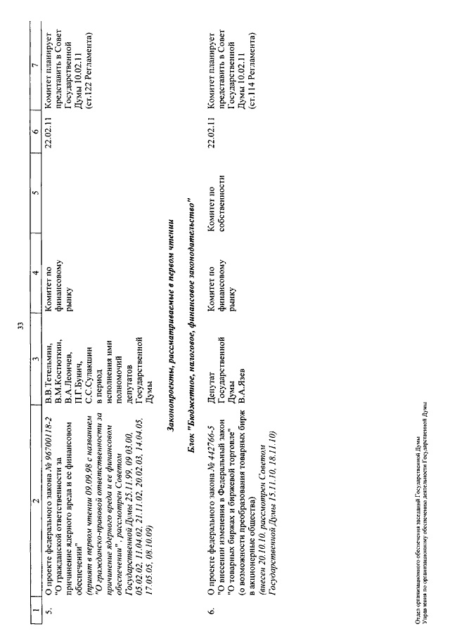 "О КАЛЕНДАРЕ РАССМОТРЕНИЯ ВОПРОСОВ ГОСУДАРСТВЕННОЙ ДУМОЙ С 8 ПО 25 ФЕВРАЛЯ 2011 ГОДА"