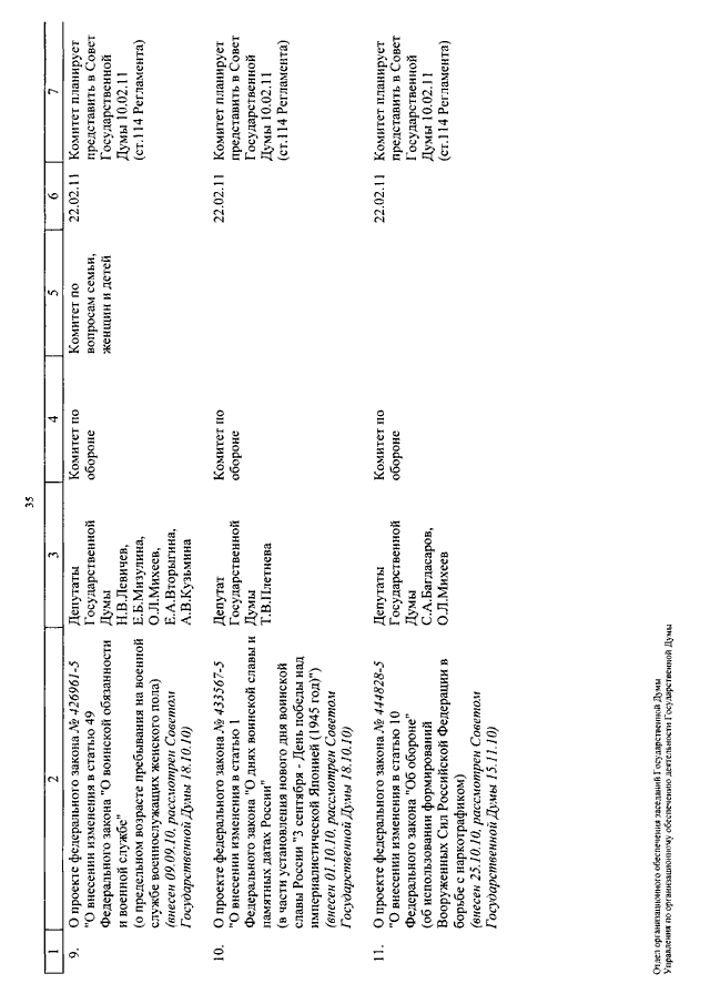 "О КАЛЕНДАРЕ РАССМОТРЕНИЯ ВОПРОСОВ ГОСУДАРСТВЕННОЙ ДУМОЙ С 8 ПО 25 ФЕВРАЛЯ 2011 ГОДА"