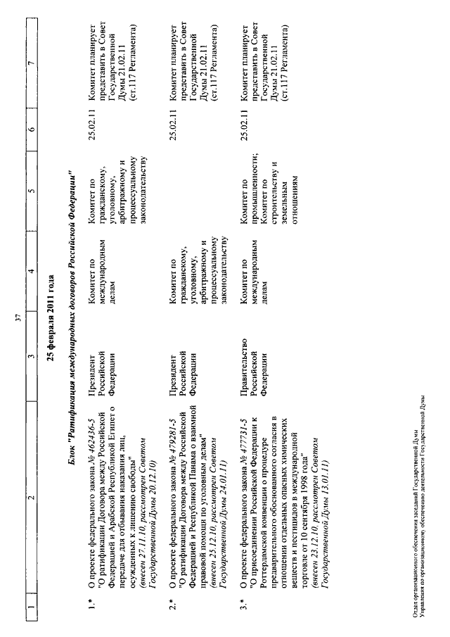"О КАЛЕНДАРЕ РАССМОТРЕНИЯ ВОПРОСОВ ГОСУДАРСТВЕННОЙ ДУМОЙ С 8 ПО 25 ФЕВРАЛЯ 2011 ГОДА"