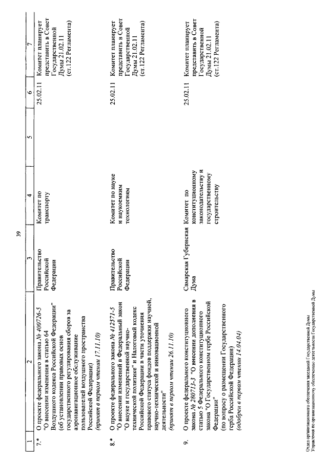 "О КАЛЕНДАРЕ РАССМОТРЕНИЯ ВОПРОСОВ ГОСУДАРСТВЕННОЙ ДУМОЙ С 8 ПО 25 ФЕВРАЛЯ 2011 ГОДА"
