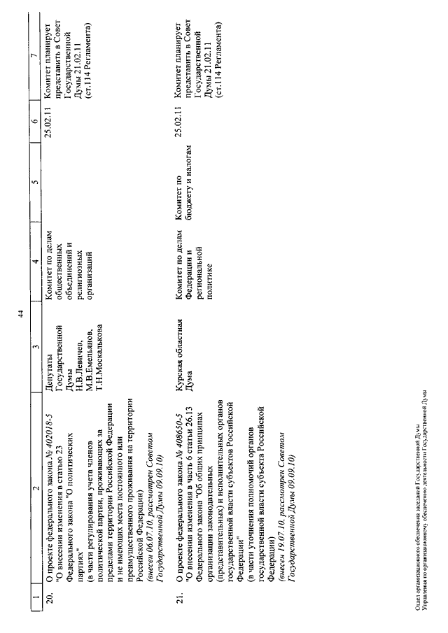 "О КАЛЕНДАРЕ РАССМОТРЕНИЯ ВОПРОСОВ ГОСУДАРСТВЕННОЙ ДУМОЙ С 8 ПО 25 ФЕВРАЛЯ 2011 ГОДА"