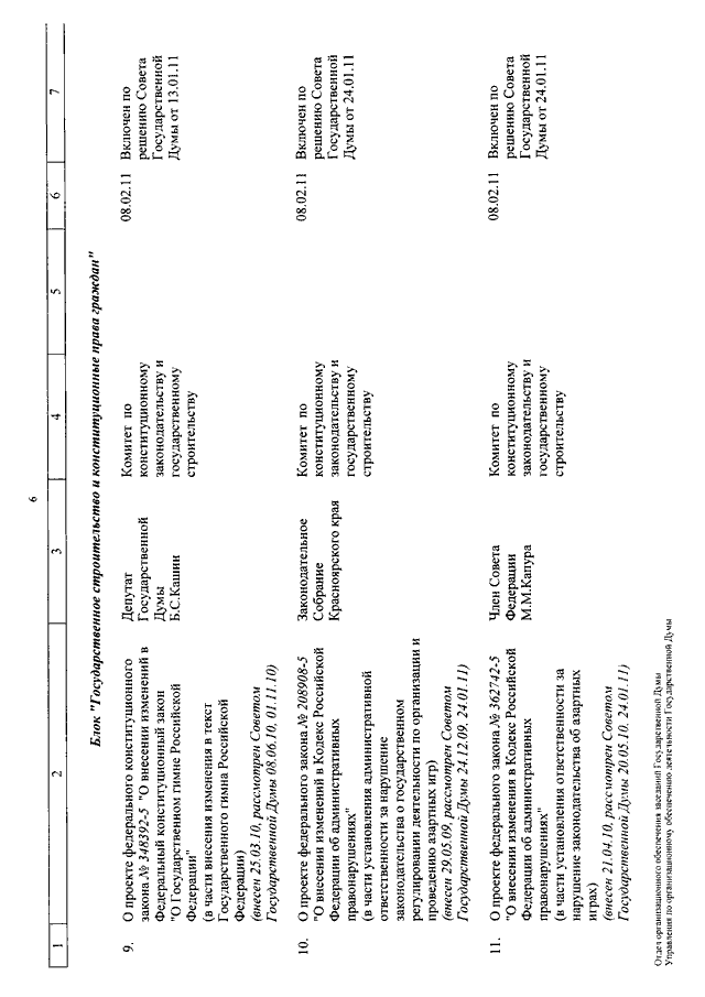 "О КАЛЕНДАРЕ РАССМОТРЕНИЯ ВОПРОСОВ ГОСУДАРСТВЕННОЙ ДУМОЙ С 8 ПО 25 ФЕВРАЛЯ 2011 ГОДА"