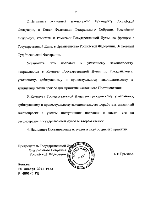 ПОСТАНОВЛЕНИЕ ГД ФС РФ от 26.01.2011 N 4801-5 ГД