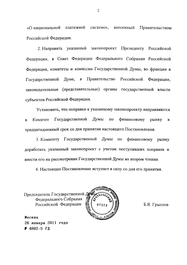 ПОСТАНОВЛЕНИЕ ГД ФС РФ от 26.01.2011 N 4802-5 ГД
