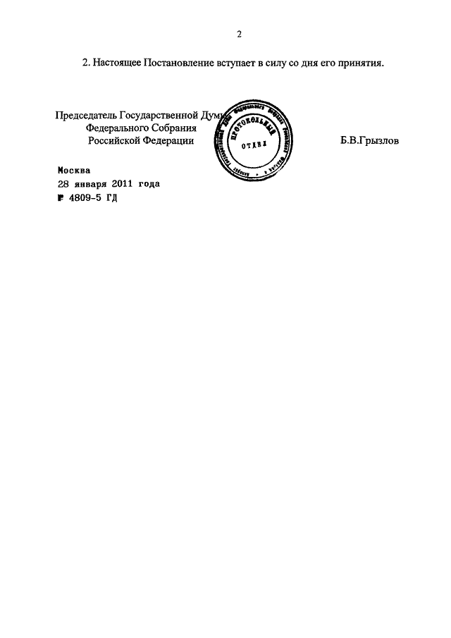 ПОСТАНОВЛЕНИЕ ГД ФС РФ от 28.01.2011 N 4809-5 ГД