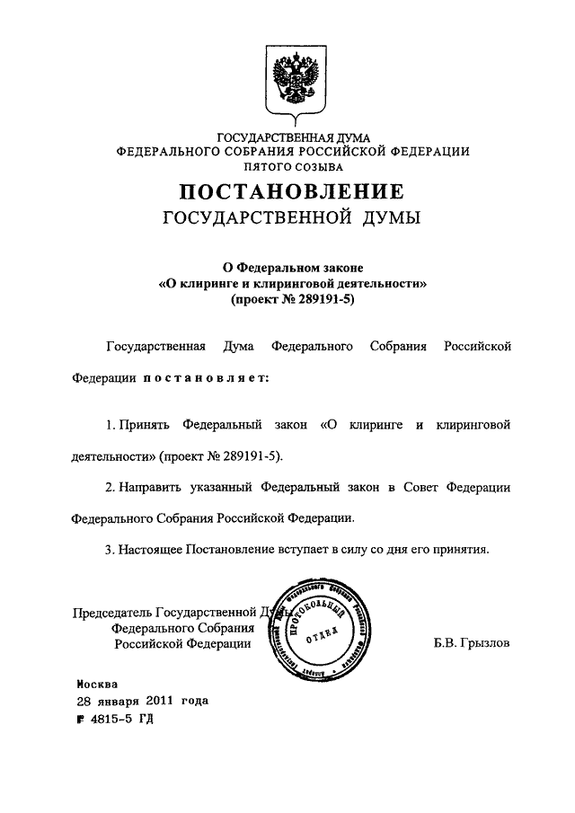 ПОСТАНОВЛЕНИЕ ГД ФС РФ от 28.01.2011 N 4815-5 ГД