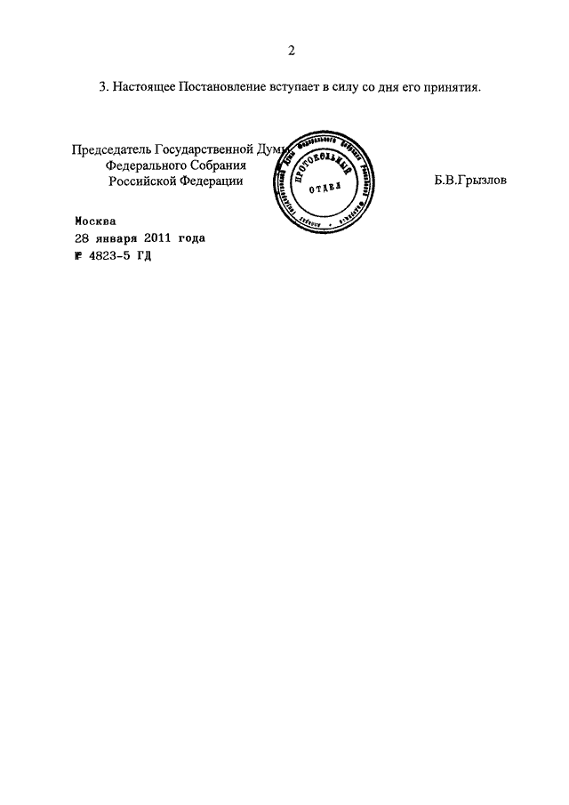 ПОСТАНОВЛЕНИЕ ГД ФС РФ от 28.01.2011 N 4823-5 ГД