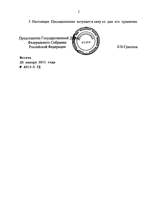 ПОСТАНОВЛЕНИЕ ГД ФС РФ от 28.01.2011 N 4813-5 ГД