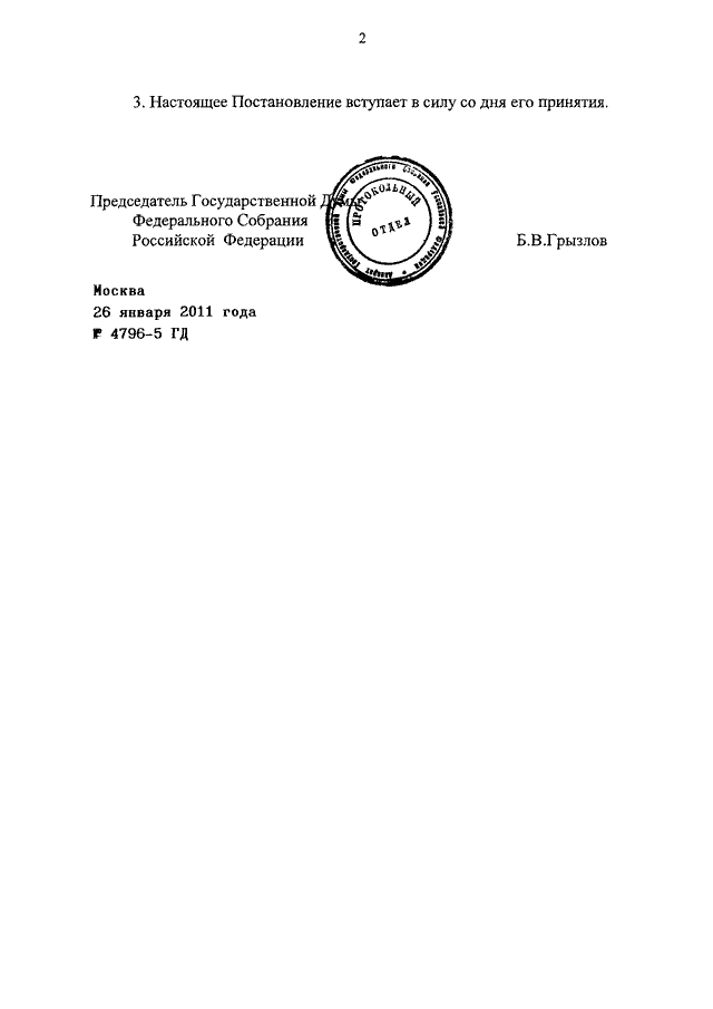ПОСТАНОВЛЕНИЕ ГД ФС РФ от 26.01.2011 N 4796-5 ГД