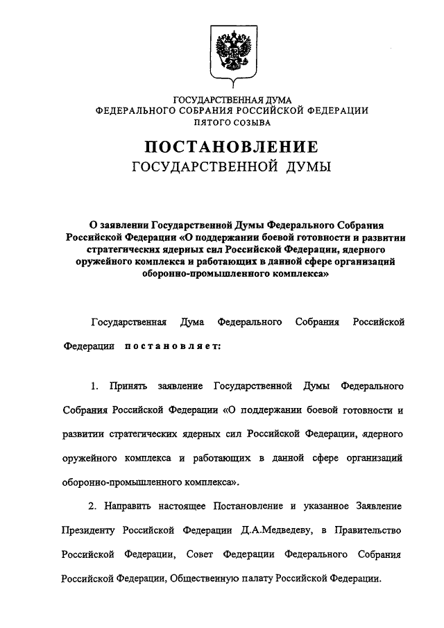 "О ЗАЯВЛЕНИИ ГОСУДАРСТВЕННОЙ ДУМЫ ФЕДЕРАЛЬНОГО СОБРАНИЯ РОССИЙСКОЙ
